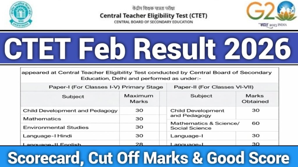 CTET Feb Result 2026 Scorecard, Cut Off Marks & Good Score